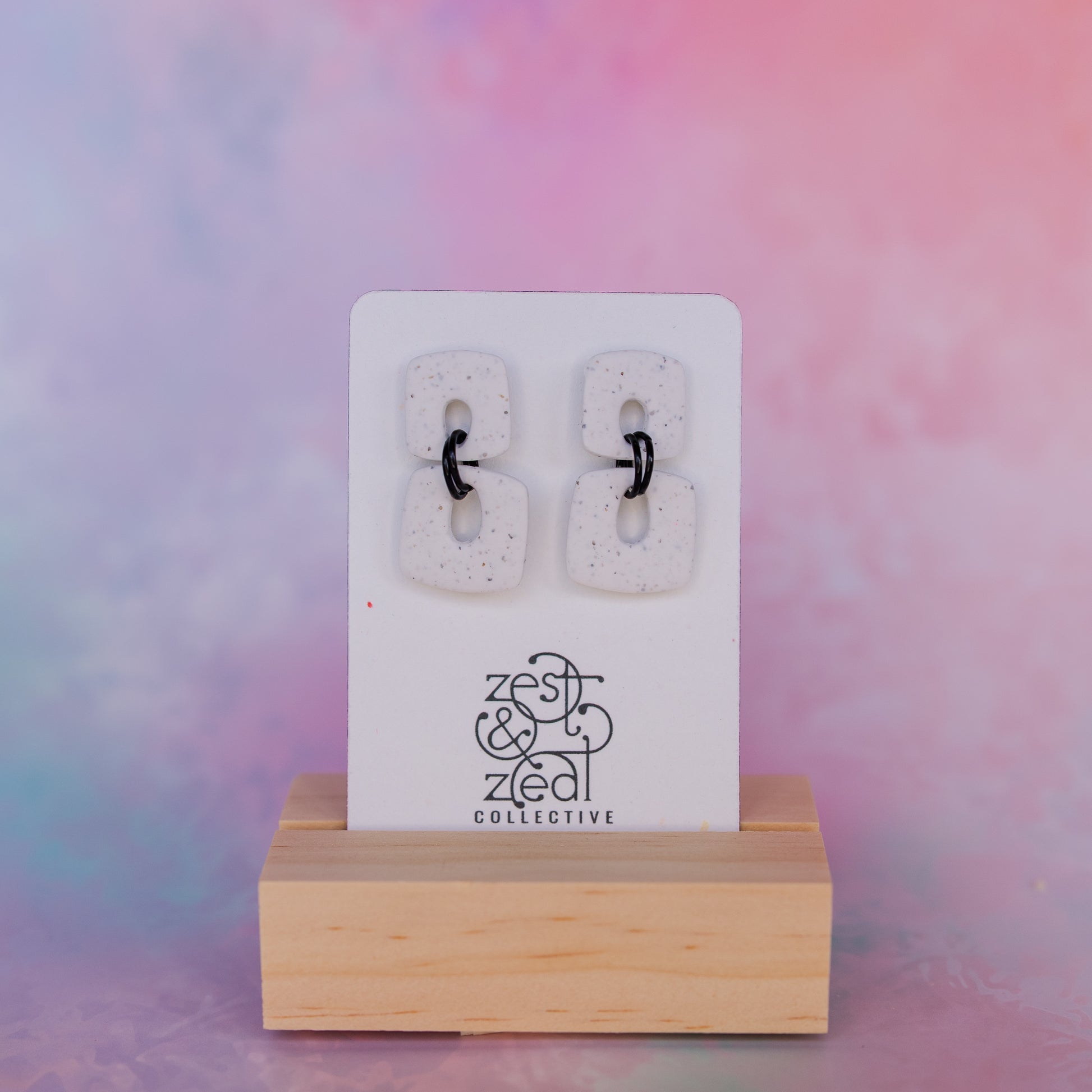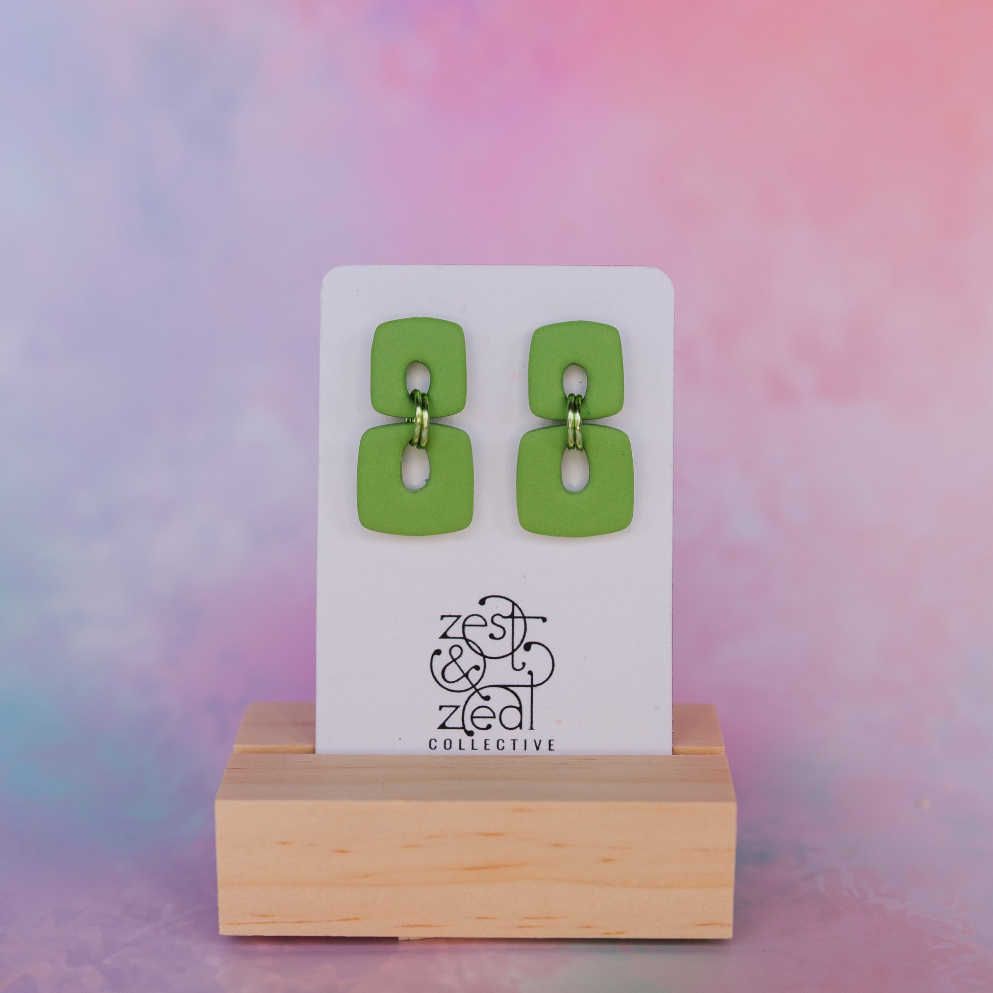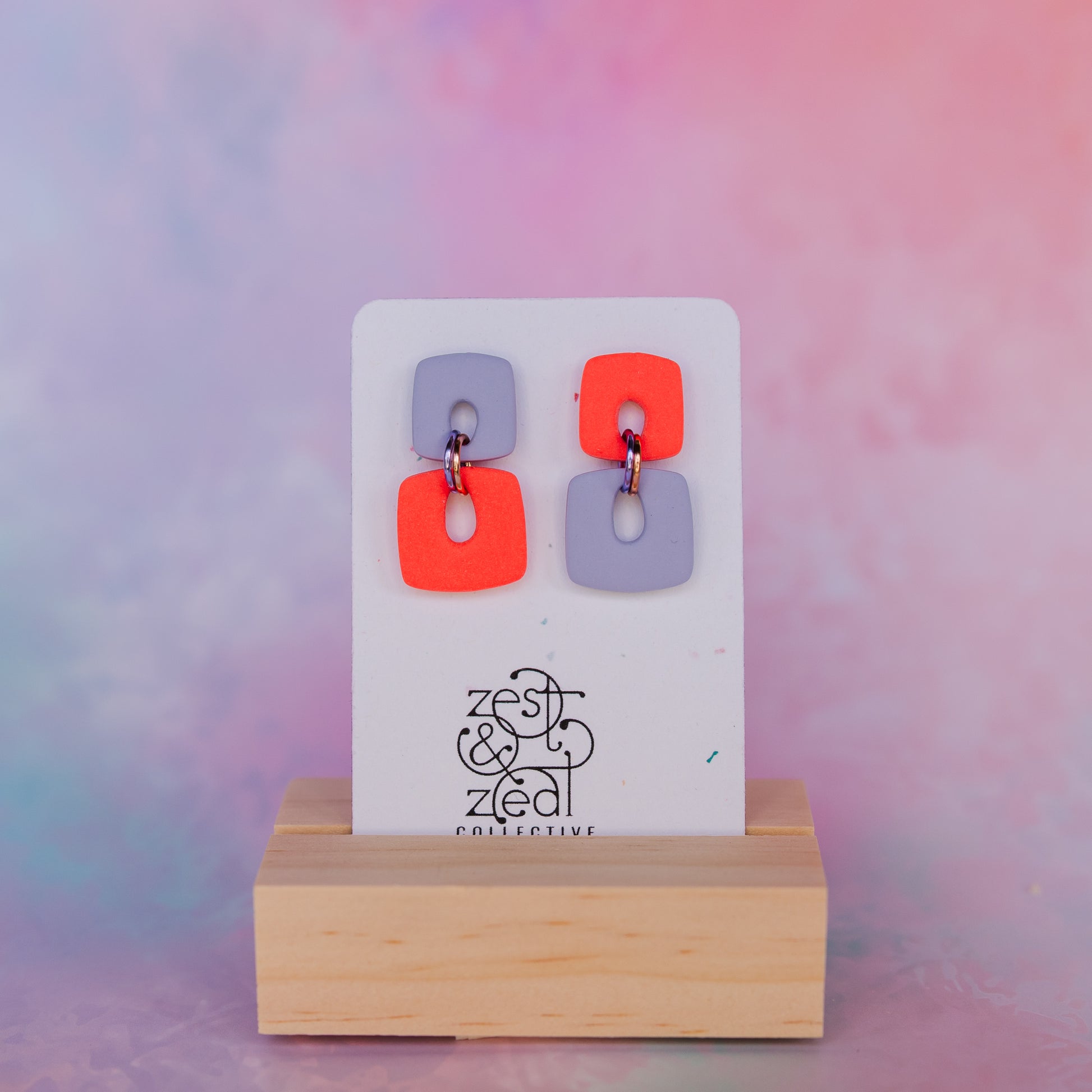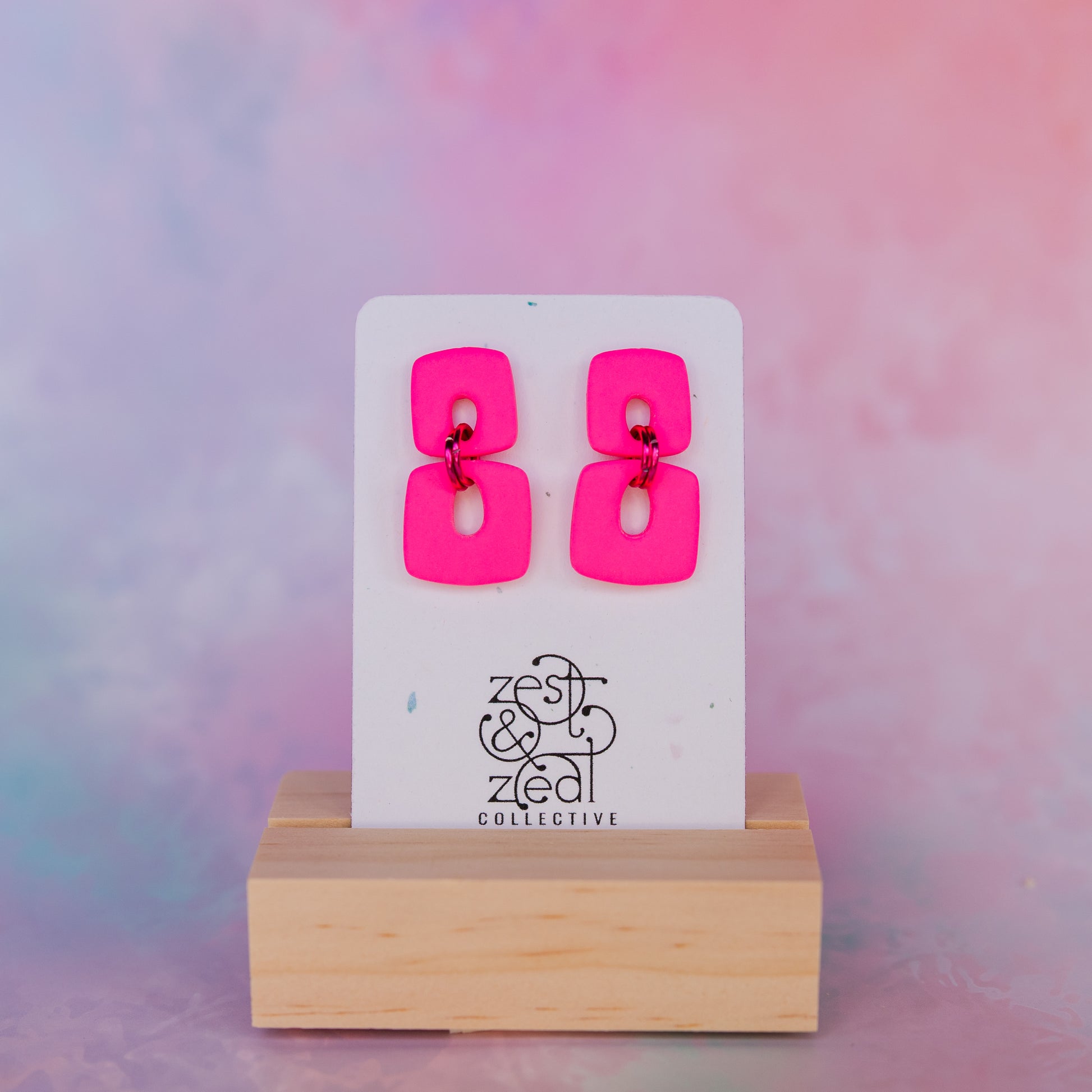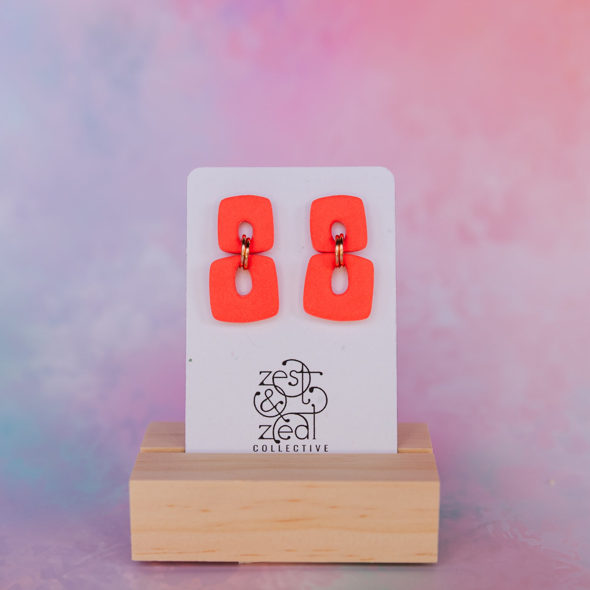 Part of the Signature Foundation Collection, Finley is handcrafted from lightweight polymer clay and available in rotating seasonal shades like terracotta orange and deep teal. Finished with hypoallergenic metal jump rings in a monochromatic tone.